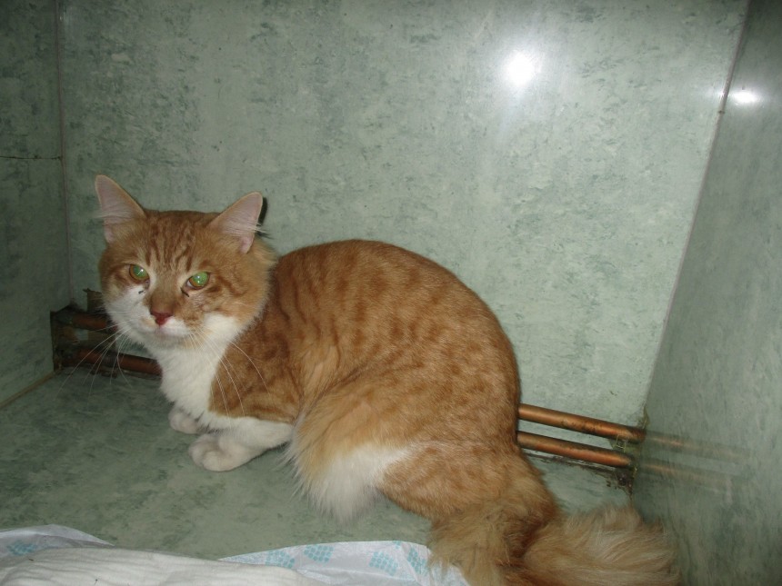 Viens kaķītis patversmē nonāca ar smagu pakaļkājas lūzumu. Vecmilgrāvī viņš bija uzrāpies ļoti augstu kādā kokā. VUGD darbinieki centās kaķīti izglābt un nocelt, bet viņš bailēs lēca lejā un diemžēl piezemējās ļoti neveiksmīgi...