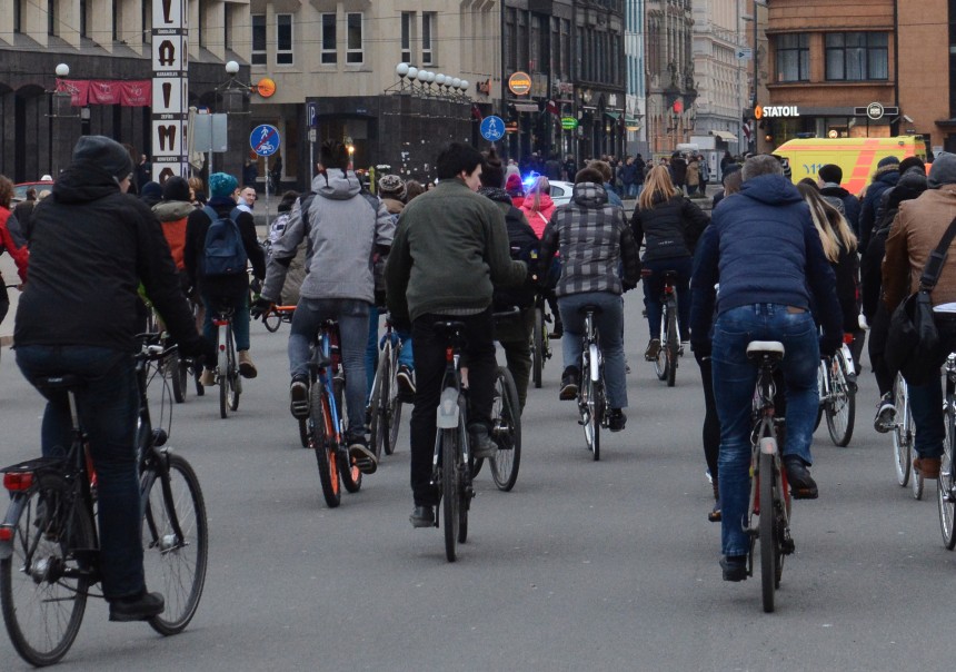 Velosipēdistiem ir jāpārvietojas pa tiem paredzēto infrastruktūru, bet, ja tādas nav, tad pa brauktuvi vai izņēmuma gadījumā - pa ietvi, kur jebkurā gadījumā priekšroka ir gājējiem.