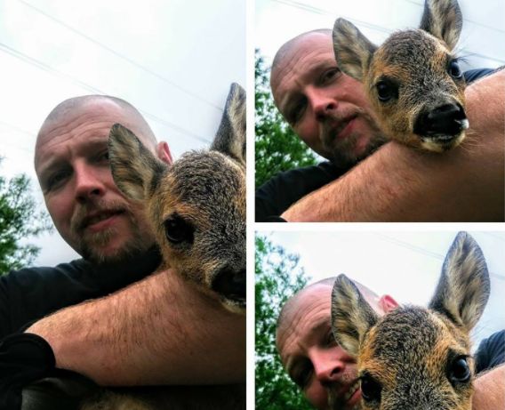 Kāds sociālā tīkla facebook lietotājs dalījies ar attēliem, kuros iemūžinājis meža zvēru, kuru izdevies izglābt zāles pļaušanas laikā.