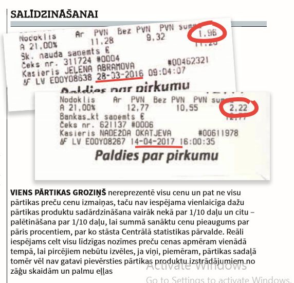 Reālo inflāciju gada pirmajā pusē rāda pārtikas grozs, kāds jau kopš 2004. gada tiek piepildīts ar maksimāli līdzīgām precēm vienā un tajā pašā veikalā Lieldienās. Jaunākā publikācija par šā groza saturu un cenu tika sniegta šā gada 18. aprīlī. Pirkumu čeki liecina par pievienotās vērtības nodokļa (PVN) maksājuma pieaugumu no 1,96 eiro pagājušajā gadā līdz 2,22 eiro šajā gadā - par 26 centiem jeb 13,3%. Ja šādos apstākļos VID atļaujas uzrādīt PVN ieņēmumu pieaugumu tikai par 54,3 miljoniem eiro jeb 6,9%, kas uz pusi atpaliek no cenu pieauguma tempa, tad tas ir uz robežas ar pierādījumu, ka PVN izkrāpšanas shēmu apjoms dubultojies.