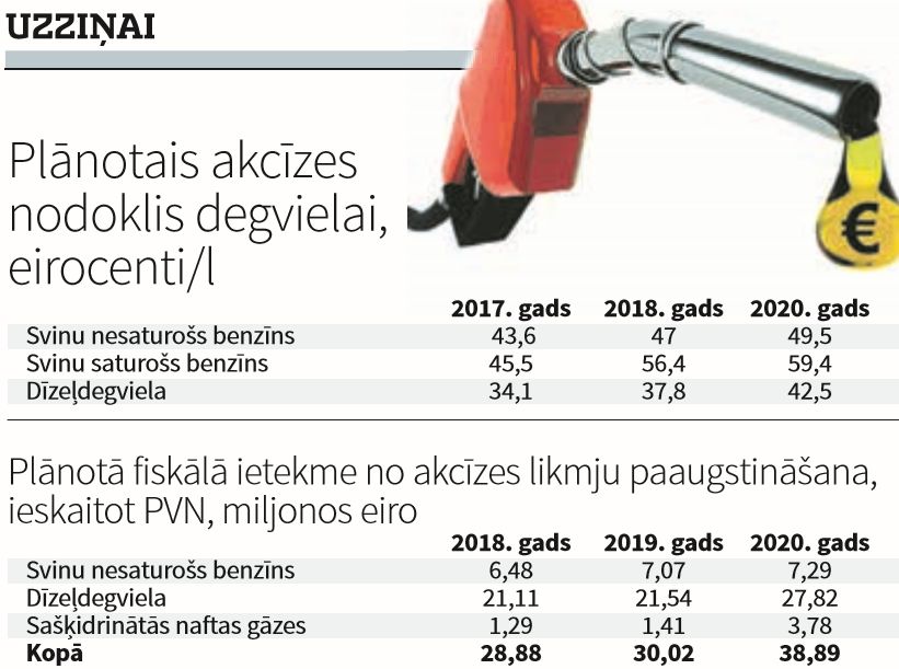Valsts budžeta sabalansēšanai nepieciešamais degvielas akcīzes nodokļa kāpums dīzeļdegvielu nākamgad varētu sadārdzināt par aptuveni 5 centiem litrā, bet benzīnu – par 4 centiem litrā. Savukārt trīs gadu laikā sadārdzinājums jau varētu būt par 10 centiem litrā dīzeļdegvielai un par 7 centiem litrā benzīnam. Degvielas tirgotāji raizējas, ka straujais cenu kāpums samazinās patēriņu, bet ekonomisti norāda uz iespējamu inflācijas pieaugumu.