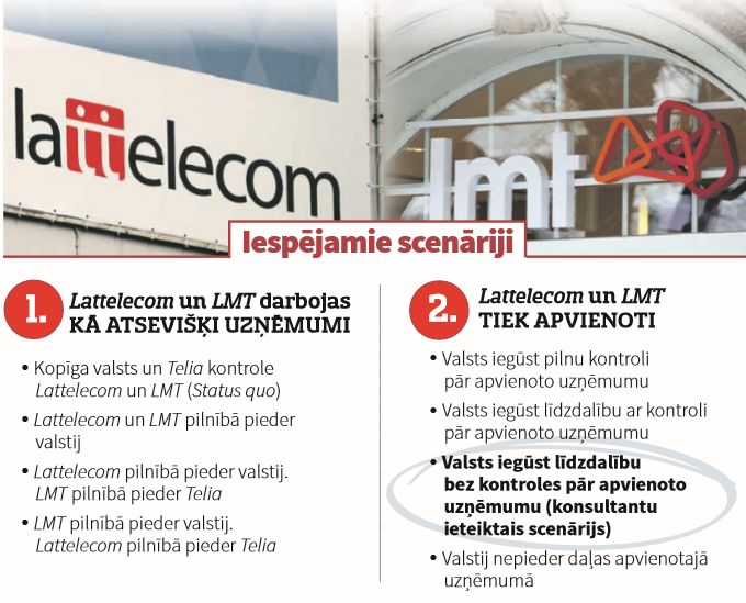 Nav gan tā, ka konsultanti būtu ieteikuši uzņēmumus vienkārši ņemt un pārdot Telia Sonera. Aplūkotie scenāriji ir vairāki, bet ieteiktais atbilst versijai 2.3.: «Lattelecom un LMT tiek apvienoti. Valsts iegūst līdzdalību bez kontroles pār apvienoto uzņēmumu.»