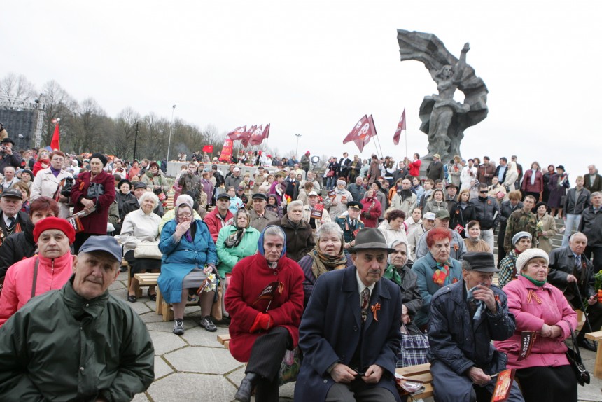 Svinēt sešdesmit piekto gadskārtu kopš Otrā pasaules kara beigām pie Uzvaras pieminekļa svētdien Rīgā sapulcējās vairāk nekā 10 000 cilvēku. Nokļūt svētku epicentrā bija apgrūtinoši, jo Pārdaugavas trotuāri šķita daudz par šauru tik lielai ļaužu plūsmai.