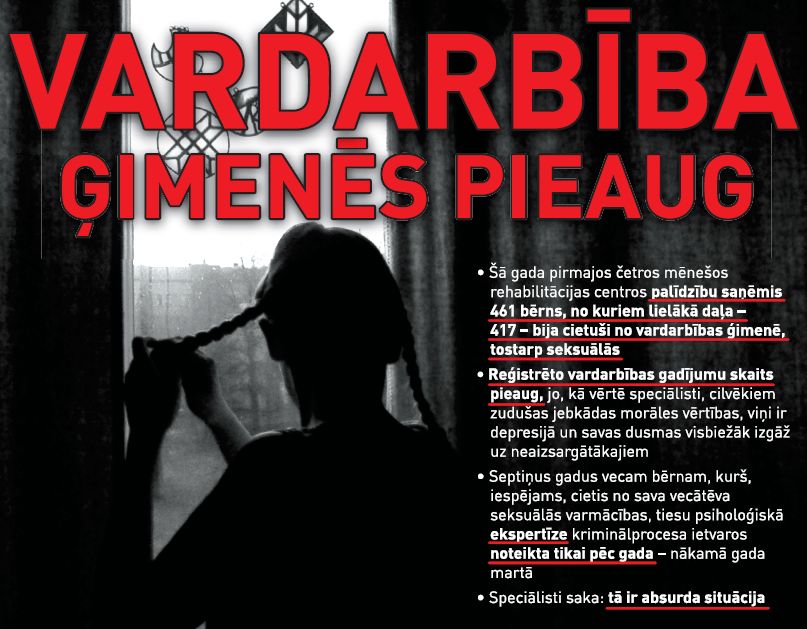 Par septiņus gadus veco zēnu, kurš, iespējams, cietis no seksuālas vardarbības no sava vectēva puses, tiesībsargājošās iestādes informējis skolas pedagogs. Policija uzsākusi kriminālprocesu, bet zēns ievietots rehabilitācijas centrā uz 60 dienu ilgu rehabilitāciju. Lietas izmeklēšanas rezultātā ir nepieciešams veikt tiesu psiholoģisko ekspertīzi, kas ir pašsaprotami šādās krimināllietās. Kā Neatkarīgajai stāstīja rehabilitācijas centra vadītāja (laikraksts neminēs ne rajonu, ne rehabilitācijas centra nosaukumu bērna interesēs), policija pieteikusi šo ekspertīzi Psihiatrijas centram, kur izmeklētājiem paziņots, ka ir rinda uz ekspertīzēm, arī cietušiem bērniem, un to būs iespējams saņemt ne agrāk kā nākamā gada martā.