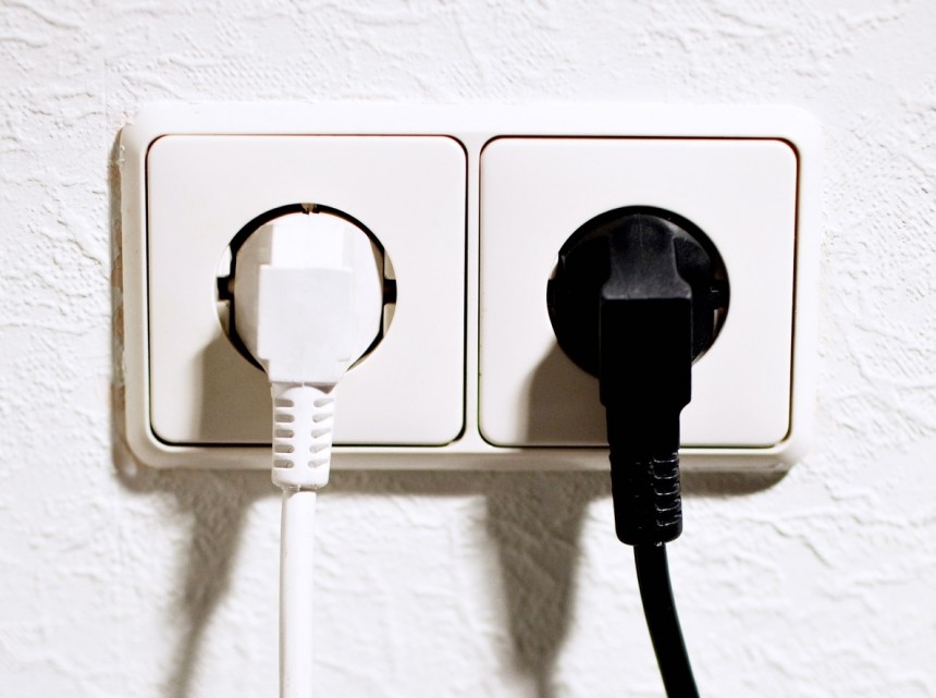 Skapja siena aizsedz vienu no divām blakus esošām kontaktligzdām, taču abas ir apvienotas vienā plastmasas rāmī un montējas kopā.