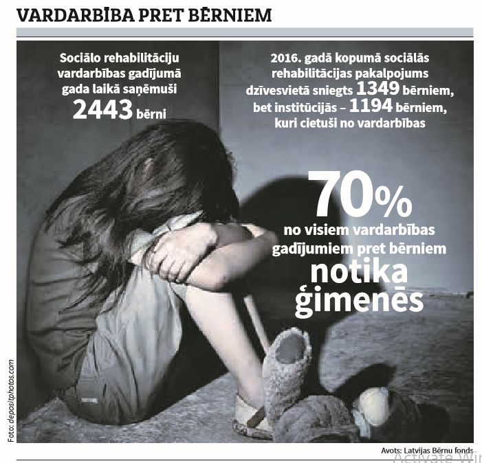 Viena no sociālām problēmām, kas Latvijā diemžēl nezaudē savu aktualitāti, ir vardarbība pret bērniem. Bērnu fonda speciālisti norāda, ka vardarbības gadījumu skaits nemitīgi pieaug un gadījumi kļūst arvien šokējošāki. Piemēram, pagājušajā gadā lielākā daļa - 70 procenti - no visiem vardarbības gadījumiem pret bērniem notika ģimenēs, lai gan tieši ģimenes emocionālās labsajūtas ietekme uz bērniem ir visspēcīgākā un tieši ģimenē bērnam būtu jāsaņem vislielākais atbalsts un sirds siltums. Bērnu fonds atbild par septiņiem sociālās rehabilitācijas centriem visā Latvijā, kuros palīdzību sniedz profesionāli, īpaši sagatavoti psihologi, sociālie darbinieki un citi speciālisti. Gada laikā šajos centros palīdzība sniegta vidēji 1300 bērniem, un diemžēl arvien biežāk tādiem bērniem, kuri cietuši no pašiem tuvākajiem ģimenes locekļiem - bioloģiskajiem vecākiem, vecvecākiem un citiem tuviniekiem. 2016. gadā kopumā sociālās rehabilitācijas pakalpojums dzīvesvietā sniegts 1349 bērniem, bet rehabilitācijas centros - 1194 bērniem, kuri cietuši no vardarbības. Kopumā tie ir divarpus tūkstoši bērnu. Bērnu fonda dati liecina, ka bērni cietuši no visu veidu vardarbības - fiziskās, seksuālās, emocionālās un pamešanas novārtā.