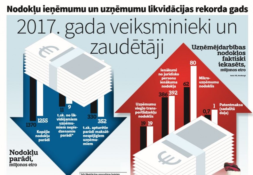 Šogad ar uzņēmējdarbību saistītos nodokļos iekasēta rekordliela summa - ieņēmumi no juridisko personu ienākuma nodokļa šogad budžetu papildinājuši ar 392 miljoniem eiro, kas ir krietni vairāk nekā aizvadītajos gados, liecina Valsts ieņēmumu dienesta dati. Šogad likvidēti vairāk nekā 16 tūkstoši dažādu uzņēmumu, nodibinājumu un biedrību, kas ir rekordliels skaits pēdējo 18 gadu laikā.