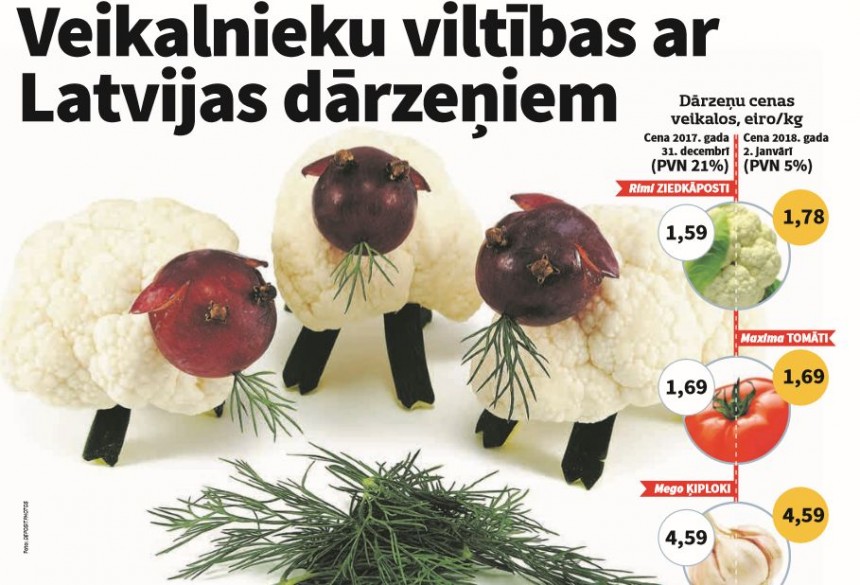 Latvijai raksturīgiem svaigiem augļiem, ogām un dārzeņiem ar šā gada pirmo dienu veikalos ir jāmaksā lētāk nekā pirms gadumijas, jo šai produktu grupai tiek piemērots samazināts pievienotās vērtības nodoklis. Pārlūkojot veikalu plauktus aizvadītā gada pēdējā dienā un jaunajā gadā, Neatkarīgā secināja, ka atsevišķos veikalos augļu un dārzeņu cenas nav samazinājušās ne par centu, dažviet cenas pat ir kāpušas.