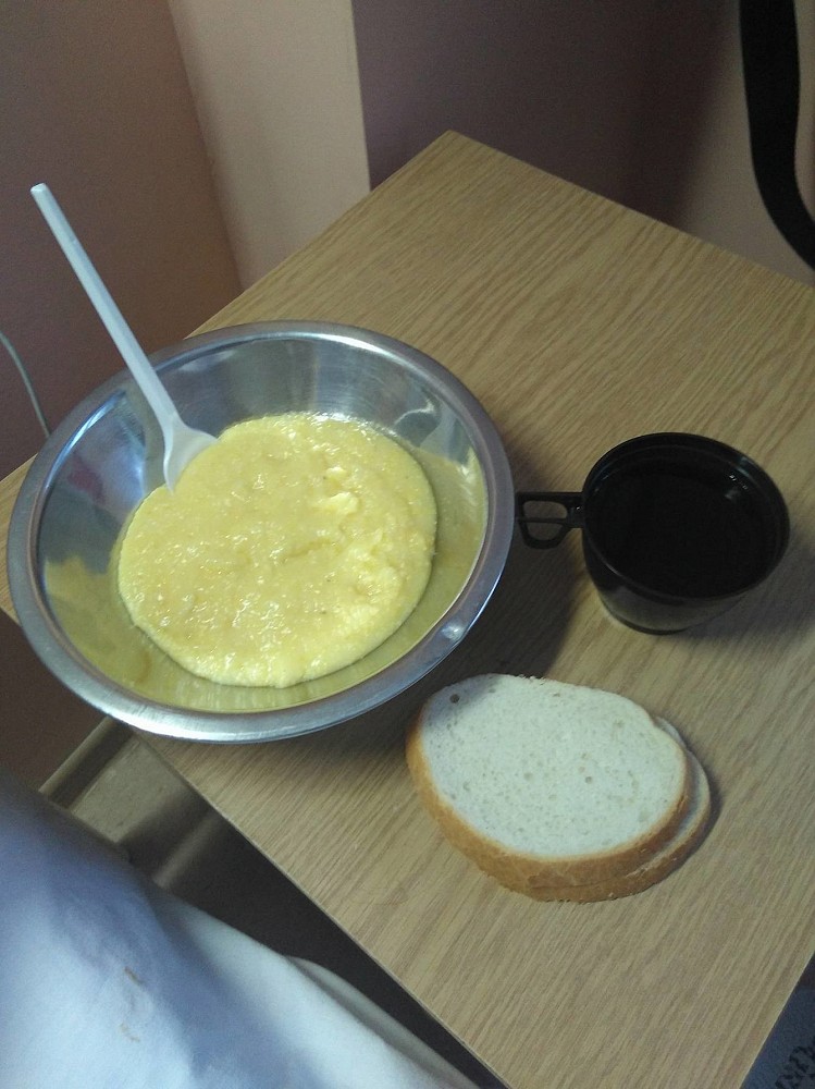 Tad sanāk, ka Rēzeknes slimnīca pacientus salīdzina ar dzīvnieku, kam jāēd no tādiem traukiem, bet tas ēdiens tiešām ir atbaidošs, bezgaršīgs, pliekans, zupas neēdamas un vēl tāds daudzums - šausmas!