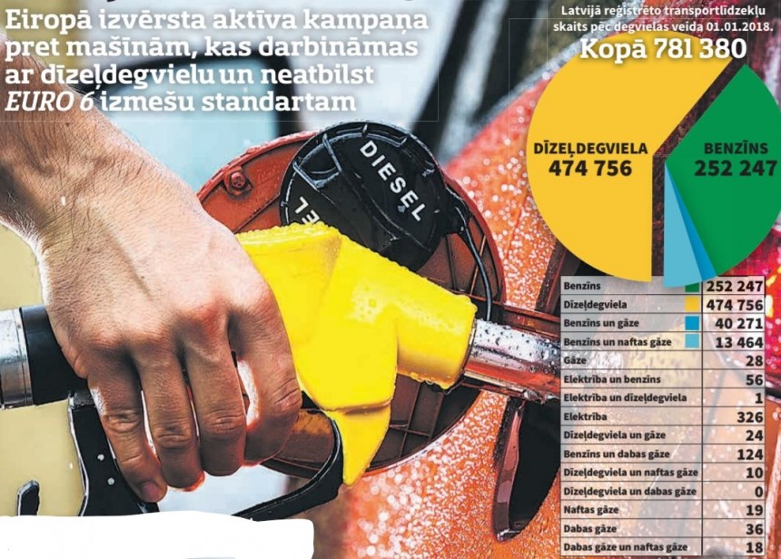 Dīzeļauto smird, rūc, ziemā ir neuzticams, plus apkopes izdevumi ir lielāki nekā benzīna mašīnām. Tomēr Latvijas gadījumā jebkura pret dīzeļdzinējiem vērsta iniciatīva tiktu ļoti sāpīgi uztverta. Ceļu satiksmes drošības direkcijas (CSDD) statistika liecina, ka komercsektorā pāri 95% izmantoto auto ir dīzeļi, bet privātajā virs 60%. Šīs popularitātes iemeslus Neatkarīgajai izskaidroja Transportlīdzekļu kontroles un sertifikācijas inspekcijas priekšnieks Jānis Liepiņš un viņa vietnieks Aldis Adiņš. Pat mazi dīzeļdzinēji ir ekonomiskāki nekā benzīna analogi. Trūcīgai sabiedrībai tas ir būtiski. Un dīzeli Latvijā joprojām ir iespējams iegādāties nelegāli - to lej nost no vilcieniem, no kravas mašīnām. Pierobežas iedzīvotājiem ir izdevīgi pārbraukt tam pakaļ uz Krieviju, Baltkrieviju. Lūk, arī iemesls, kādēļ, izvēloties lietotu auto, priekšroka tiek dota dīzelim. Zīmīgi, ka arī jauno dīzeļa automašīnu cenas pēc Volkswagen skandāla ir nokritušās. Jāatgādina, aizpērn atklājās, ka autoindustrija, nespējot izpildīt arvien augošās vides normatīvu prasības, krāpjas. Iebūvē mašīnās tehnoloģijas, kas ļauj viltot izmešu testu rezultātus, jo pretējā gadījumā dažādu filtru piebāztie auto vairs nekust uz priekšu. Pēc Eiropas Komisijas brāziena un ASV draudiem izmest no tirgus ar visām samaksātajām soda naudām, ražotāji apsolījušies nekad vairs nekrāpties un tāpēc attīsta benzīna un elektrības hibrīdus.