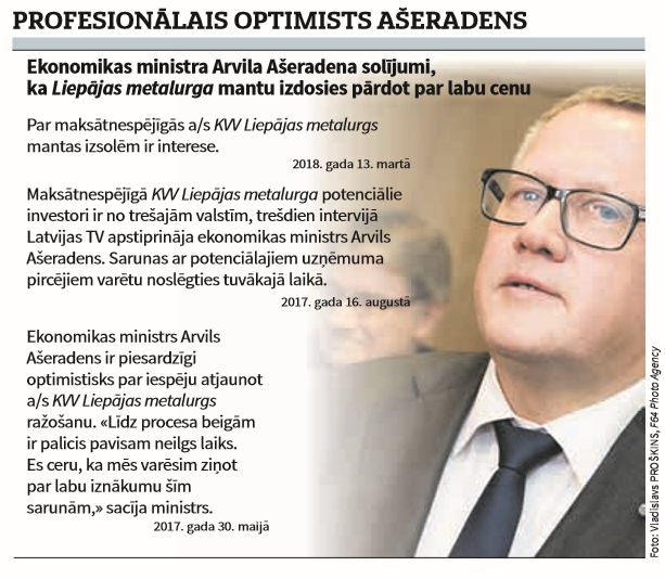 Šonedēļ valdība ne tikai pieņēma savai zināšanai aktuālo aprēķinu par Liepājā pazaudētās naudas lielumu, bet arī atvēlēja izpaust šo noslēpumu sabiedrībai. Jāpaskaidro, ka noslēpuma saturs jau tāpat bija zināms visiem, kuri to vēlējās zināt. Grūtāk saprast, kāpēc Maksātnespējas administrācija izvēlējās maksātnespējas administratoru eksāmenu kā līdzekli, lai tiktu vaļā no uzņēmuma KVV Liepājas metalurgs (LM) administratora Guntara Kora. Vismaz līdz šim zināmais nesola, ka G. Kora jau izsludinātās izsoles varētu kļūt par zelta raktuvēm nākamajam administratoram.