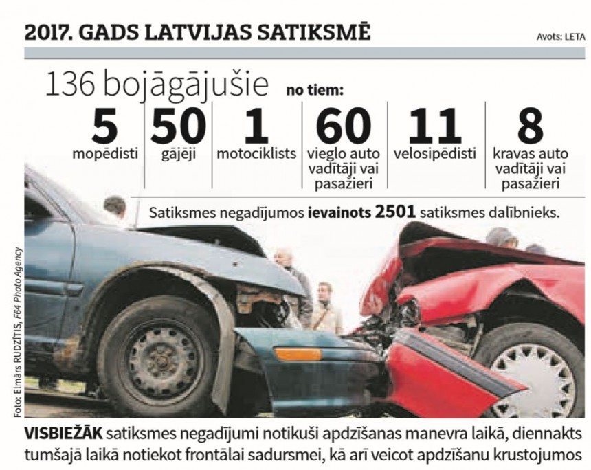Satiksmes negadījumos ievainots 2501 satiksmes dalībnieks.