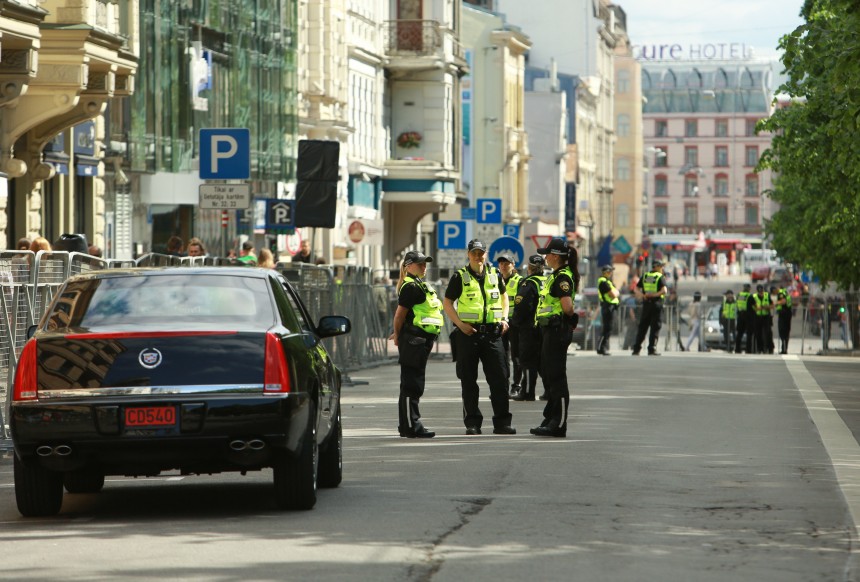 Kopumā pasākuma norises vietu uzrauga liels skaits policistu, kā arī policijas suņi.