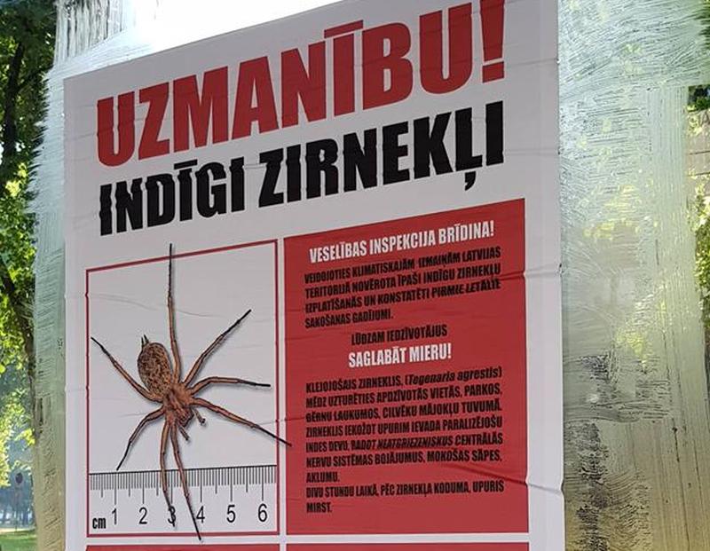 Kā ziņots, 30.jūlija rītā Rīgas sabiedriskajās vietās tika izlīmēti plakāti, uz kuriem rakstīts "Uzmanību! Indīgi zirnekļi!". Plakātos bija izplatīta viltus informācija par it kā fiksētiem zirnekļu invāzijas perēkļiem, norādot nepatiesu atsauci uz Veselības inspekciju.