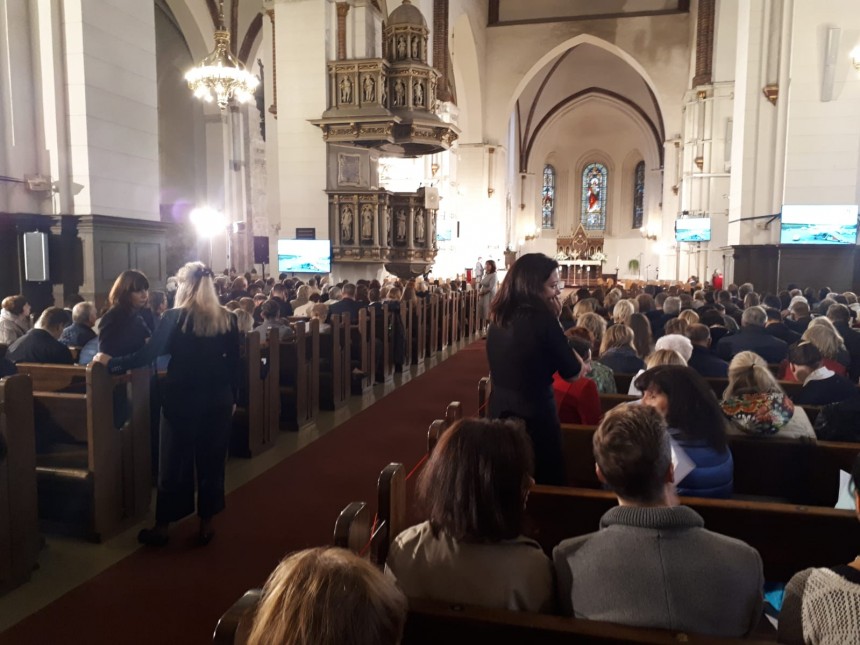 Neilgi pēc plkst. 8:00 Doma baznīcā, kur ietilpība ir aptuveni 2000 sēdvietu, bija nedaudz vairāk kā 1000 cilvēku.