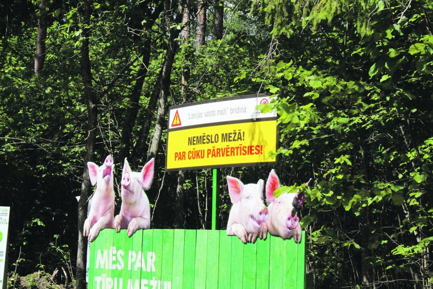 Iebraukšana mežā liek atkal un atkal atkārtot tēmu par izmestajiem atkritumiem, kurus iebraucēji aiz sevis atstāj daudz biezākā slānī nekā iegājēji. Pat ja cilvēks apzināti neved atkritumus uz mežu, ievest iespējams daudz vairāk nekā ienest. Piemēram, ievest ēdienu iepakojumos, kas pēc tam tiek izmesti vai it kā nejauši aizmirsti mežā. Šādu atkritumu daudzums šogad manāmi pieaudzis siltās vasaras dēļ. LVM tam cenšas likt pretī jau zināmo Cūkmena tēlu un nupat kā piesaistījis TV personību Māri Olti kampaņai Pats ienesi - pats iznes!.