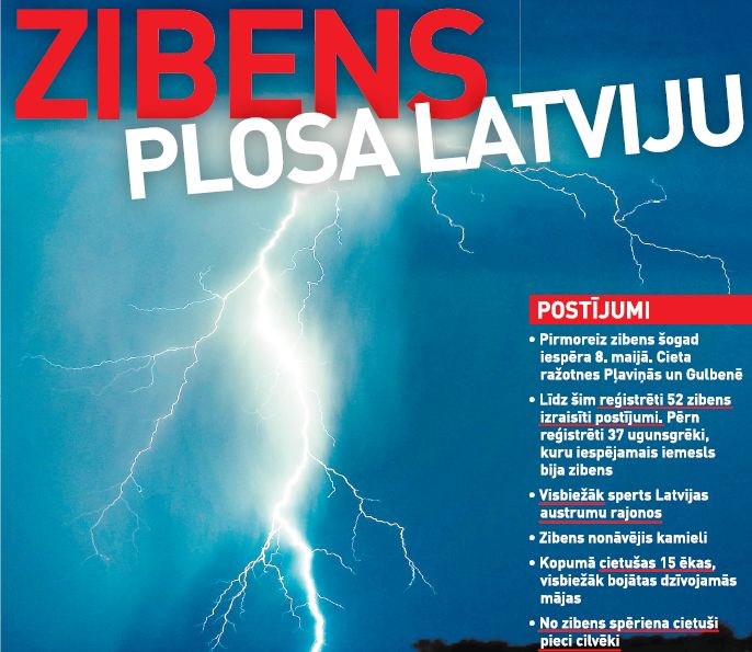 Šovasar Latvija piedzīvojusi ne vien karstuma rekordus un viesuļvētras, bet arī pēdējos piecos gados lielāko zibens ugunsgrēku birumu. Enerģiskā dabas parādība nesaudzē nedz īpašumu, nedz dzīvniekus.