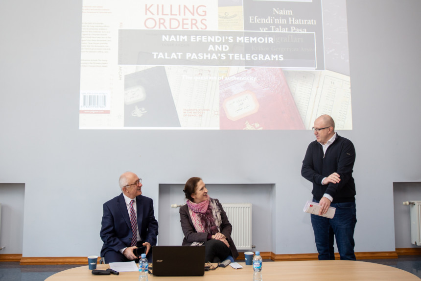 Vēsturnieks Taners Aksams un filozofijas profesore Šiobana Neša-Maršala stāstīja par armēņu genocīda īpašajām iezīmēm un Turcijas valdību ilgstošajiem centieniem noliegt tā vēsturiskumu un slēpt ap to esošos dokumentāros pierādījumus. Profesors T. Aksams savā lekcijā atsaucās arī uz savu jaunāko grāmatu Killing Orders, kas sniedz būtisku skaidrojumu armēņu genocīda gadījumā izplūdušajām robežām starp faktiem un patiesību, izgaismojot gan Turcijas valdības paslēptos vai iznīcinātos dokumentus, kas satur slepkavības rīkojumus, gan pierādot šo rīkojumu autentiskumu.