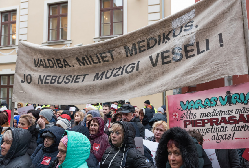 Tāpat vēstīts, ka Latvijas Māsu asociācijas, Latvijas Jauno ārstu asociācijas un Latvijas Ārstu biedrības valdes paudušas neuzticību veselības ministrei Ilzei Viņķelei (AP), kā arī atkārtoti pieprasījuāss finanšu ministra Jāņa Reira (JV) demisiju.