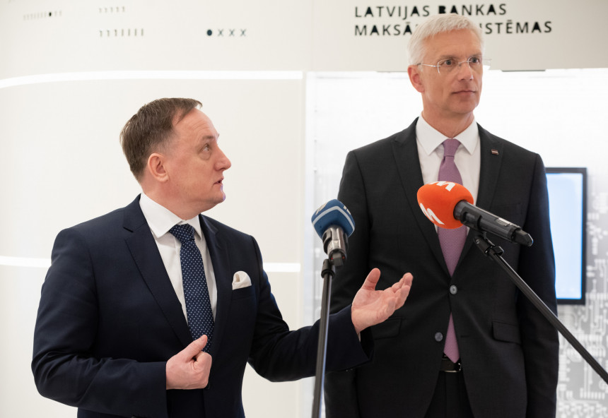 Ministru prezidents Krišjānis Kariņš viesojās Latvijas Bankā (LB) un sacentās ar mājastēvu, bankas prezidentu Mārtiņu Kazāku, par to, kurš kuram izteiks vairāk komplimentu.