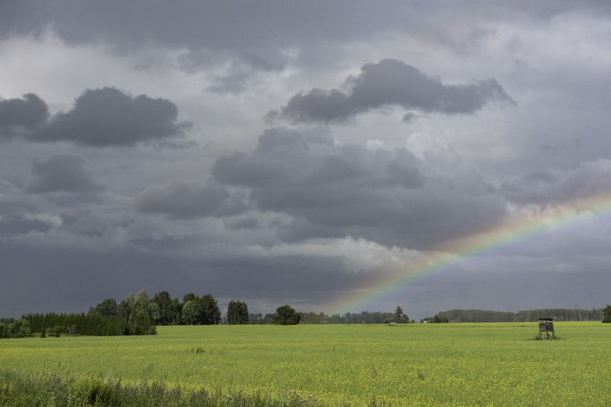 Dienā lietus mākoņi no Kurzemes šķērsos visu Latviju, vietumis iespējamas pērkona lietusgāzes ar krusu. Uzspīdot saulei, gaiss iesils līdz +16..+21 grādam.