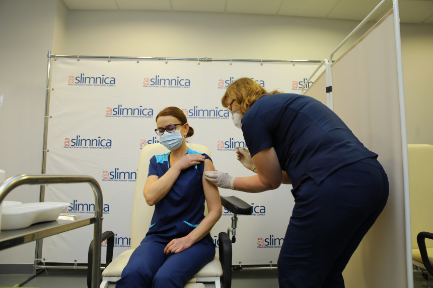 Kā ziņots, šodien desmit Latvijas slimnīcās izveidotos vakcinācijas kabinetos tiks sākta brīvprātīga ārstniecības personu vakcinēšana pret Covid-19.