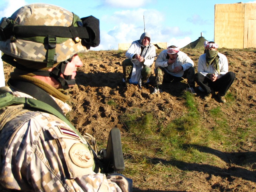 Bāzes iekšienē teltīs dzīvo karavīri, kuriem jādodas dažādos uzdevumos. Garlaikoties neļauj nemiernieki, kuri ik pēc stundas sarīko dažādus pārsteigumus – vietējie iedzīvotāji nāk sūdzēties par it kā nošautām aitām, pie nometnes vārtiem pēkšņi parādās spridzinātājs – pašnāvnieks, nometni regulāri improvizēti apšauda gan ar strēlnieku ieročiem, gan ar mīnmetējiem. Ja tā būtu reāla kaujas situācija, nemitīgie uzbrukumi radītu stresu un bailes, bet, tā kā tās ir tikai mācības, Neatkarīgās žurnālists vairākus nakts uzbrukumus mierīgi nogulēja, neraizējoties par šāvieniem ārpusē.