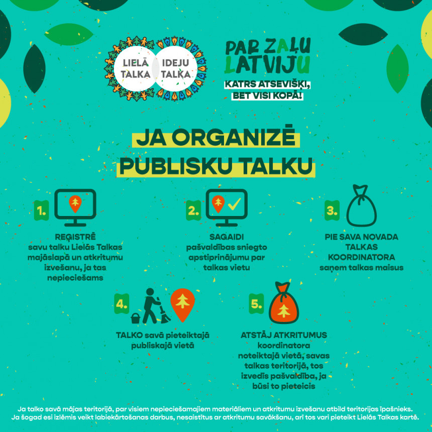 Šogad Lielās talkas vadmotīvs ir "Par zaļu Latviju - katrs atsevišķi, bet visi kopā".