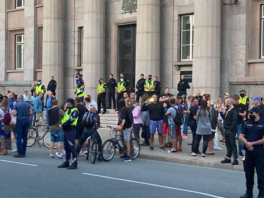 Jau ziņots, ka 4.augusta vakarā vairāki simti cilvēku pulcējās pie Ministru kabineta ēkas Rīgā, paužot neapmierinātību ar Saeimā konceptuāli atbalstīto likumprojektu par tiesībām atlaist darbiniekus bez Covid-19 sertifikāta.