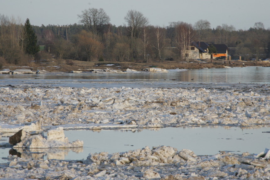 Pie Jēkabpils izveidojušies ledus krautņi, bet pēc ledus iešanas ūdens līmenis pazeminājies.