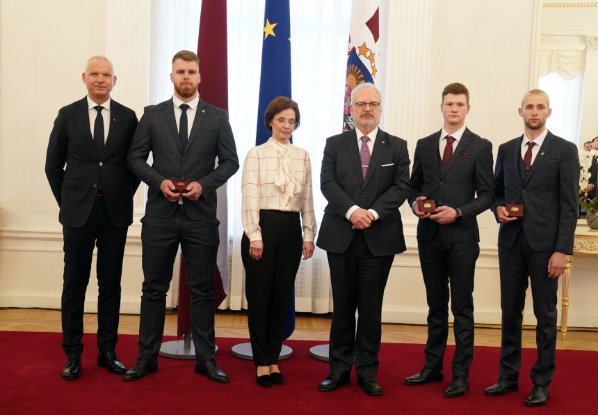Kamaniņbraucējiem Elīzai Tīrumai, Kristeram Aparjodam un divnieku ekipāžai Mārtiņam Botam un Robertam Plūmem piešķirtas Valsts prezidenta medaļas.