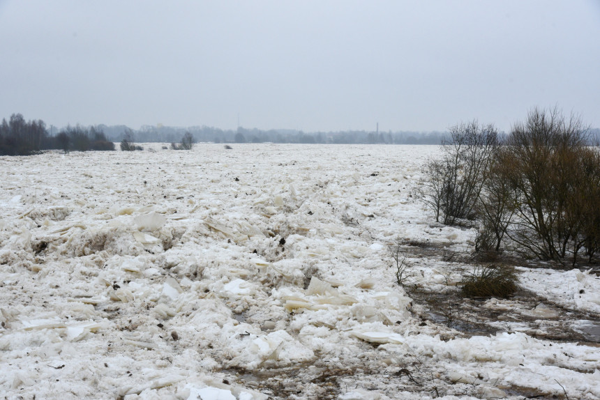 Situācija Jēkabpilī ir nemainīgi dramatiska, vērtēja Ragainis. Ledus masa Daugavā brīžam pakustās, bet kopumā stāv turpat, kur bija. Ūdens līmenis esot pārsniedzis vēsturisko plūdu līmeni.