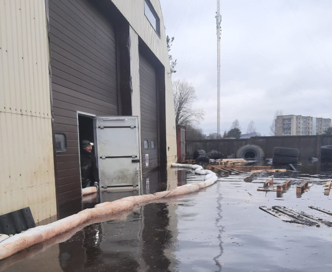 Applūstot SIA "Ošukalns" kokapstrādes ražotnes teritorijai, Bebru ielā 104A Jēkabpilī, noliktavu telpās noplūda 1000 litru motoreļļas, ko operatīvas darbības rezultātā Valsts ugunsdrošības un glābšanas dienests (VUGD) ar bonu palīdzību norobežoja.