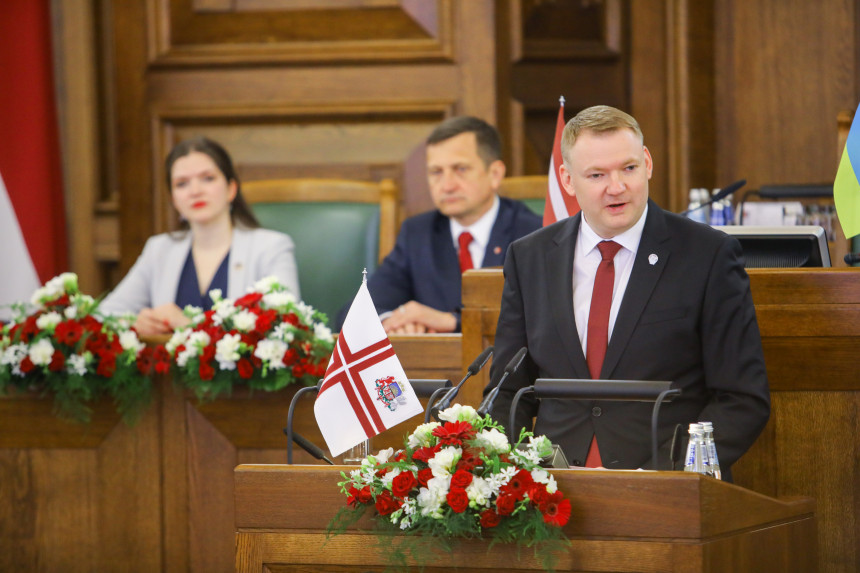 "Esam NATO un Eiropas Savienības dalībvalsts, cieši integrēti drošības un vērtību sistēmā, kas domā, kā attīstīt savas valstis, nevis sagrābt un iznīcināt citas," pauda Saeimas priekšsēdētājs, akcentējot, ka varam justies drošībā, jo paši ieguldām savā aizsardzībā un varam paļauties uz sabiedroto klātbūtni un aizsardzību.