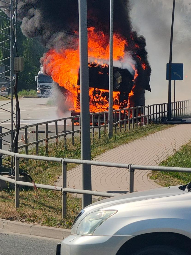 Salaspilī uz vilcēja treilera aizdedzies sabiedroto degvielas vedējs un patlaban bloķēta satiksme uz Daugavpils šosejas, noskaidroja aģentūra LETA.