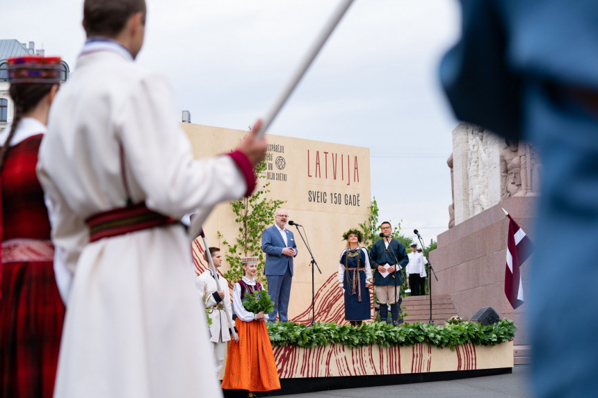 Pirms 150 gadiem dziesmu svētkos dzima latviešu nācija, svētdien Dziesmu un deju svētku dalībnieku gājiena "Novadu dižošanās" atklāšanā sacīja Valsts prezidents Egils Levits.