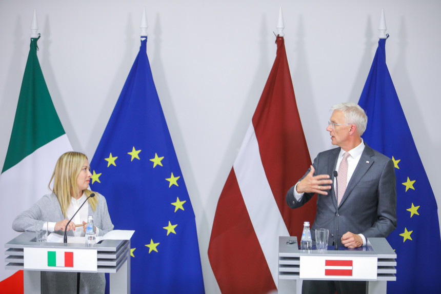 Ministru prezidents Krišjānis Kariņš (JV) un Itālijas premjerministre Džordžija Meloni, pirmdien tiekoties Rīgā, uzsvēra nepieciešamību sadarboties Eiropas Savienības (ES) ārējo robežu stiprināšanā un ārējās migrācijas kontrolē.