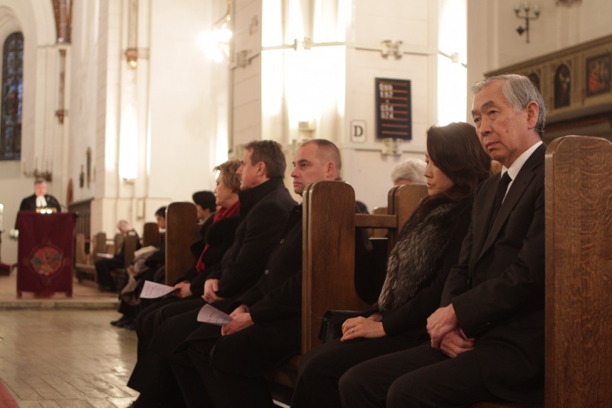 Sestdien notikušo ekumēnisko aizlūgumu par Japānas tautu un zemi klausījās vairāki simti cilvēku, dievnamā bija arī ģimenes ar maziem bērniem, uz baznīcu bija atnākuši Rīgā dzīvojošie japāņi, ieklīda pa kādam tūristam. Ļaudis uzrunāja Latvijas Evaņģēliski luteriskās baznīcas bīskaps Guntars Dimants, Latvijas Romas katoļu baznīcas arhibīskaps Zbigņevs Stankevičs un Latvijas Pareizticīgās baznīcas priesteris Jānis Dravants. G. Dimants runāja līdzībās un aicināja izrādīt žēlsirdību, līdzjūtību un rūpes tiem, kas pašlaik nespēj par sevi gādāt. Viņš atgādināja, ka traģēdijas bieži vien notiek strauji un negaidīti, taču katram vajadzētu padomāt par to, cik ilgi būsim gatavi gādāt par nelaimi piedzīvojušajiem. Viņš aizlūguma dalībniekiem jautāja un pats arī atbildēja: «Ko mēs varam dot? Lūgšanas, sirds atvērtību.»