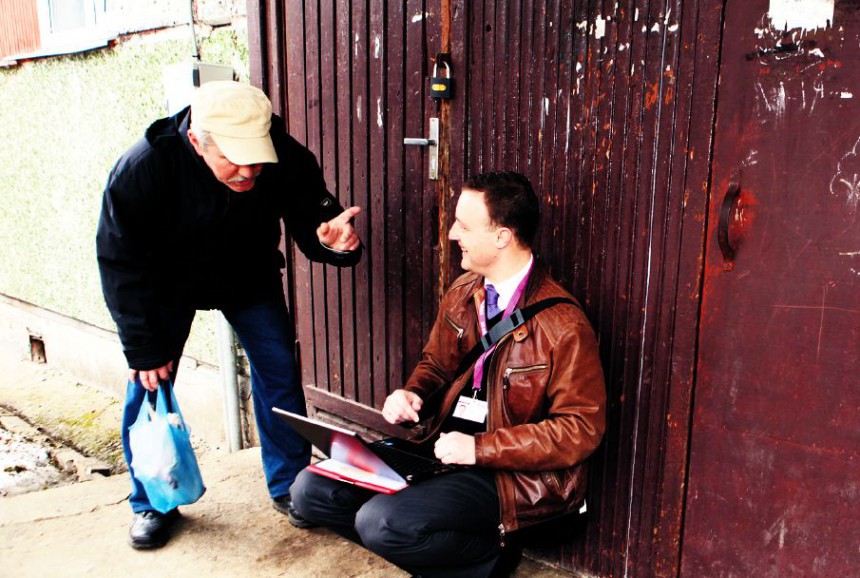 Kolīdz durvis tiek atvērtas, viņš uzreiz sveicina divās valodās, lai varētu atrast kopēju valodu ar iedzīvotājiem. «Ja negrib runāt, tad īpaši neuzbāžos, varbūt nākamajā vakarā būs labākā garastāvoklī. Līdz šim nav gadījies, kad kāds būtu atteicies no aptaujas,» komentē aptaujas. «Tas tik tā liekas, ka Ķengarags ir tāds savādāks. Es pats šeit dzīvoju, un principā tas ne ar ko neatšķiras no Purvciema vai Imantas.»