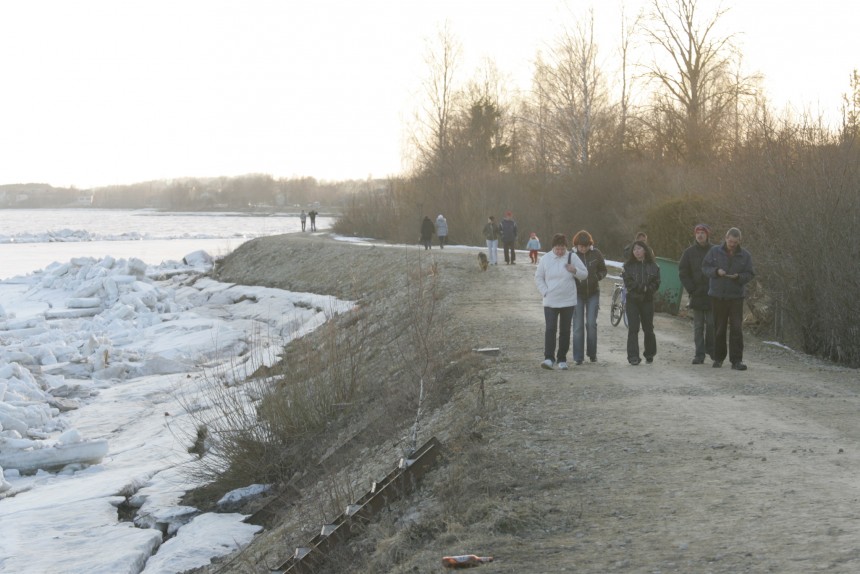 Pie Pļaviņām ir izveidojies ledus sastrēgums, tā galva (sākums) atrodas 0,5 km uz leju no Pļaviņu hidroloģiskās novērojumu stacijas. Sastrēguma augšgalā turpina krāties ledus masa, kas nāk no upes augšteces. Ūdens līmenis ceļas Pļaviņu ūdenskrātuvē. Šodien plkst. 17:00 Zeļķu novērojumu stacijā vērojama vidēja ledus iešana un ūdens līmenis ir sasniedzis 76,07 m BS, savukārt ūdens līmenis Pļaviņās ir 71,94 m BS. Sākusies palieņu applūšana Aiviekstes grīvas – Zeļķu posmā.