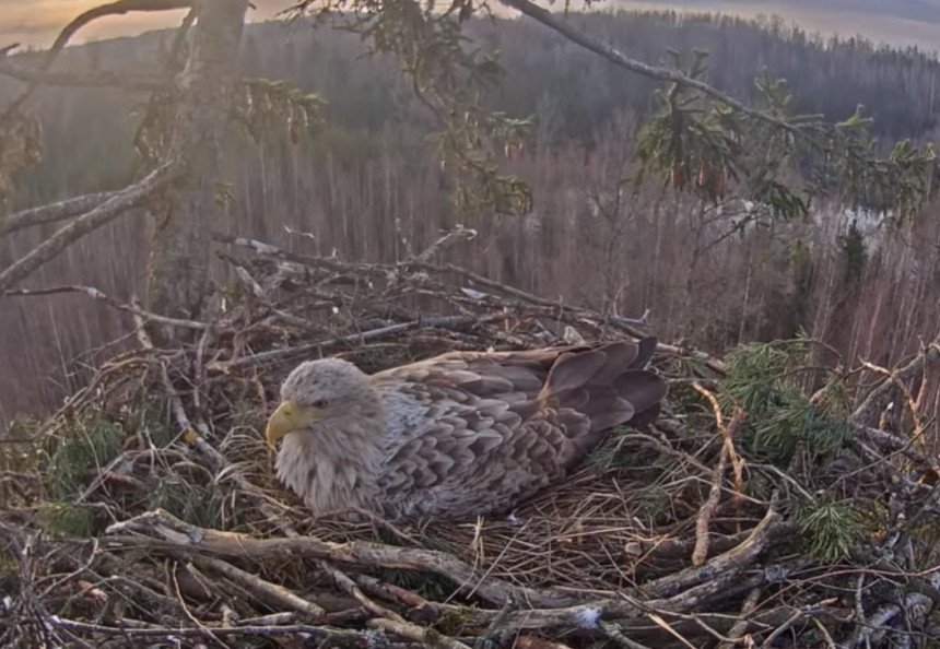Vakar pēcpusdienā ērgļu pāris laiku pa laikam pameta ligzdu uz vairākām minūtēm, atstājot olu vienu. H kungs aktīvi pienes sausās zāles un niedru kumšķus, ar ko tiek izklāta ligzdas pamatne un apsegtas olas.