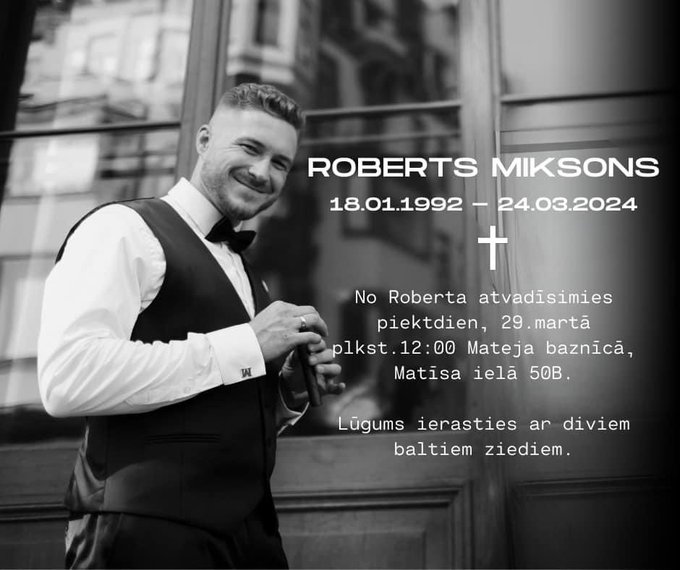No Roberta varēs atvadīties piektdien, 29. martā, plkst. 12.00 Mateja baznīcā, Matīsa ielā 50B, vēsta ieraksts "Facebook".