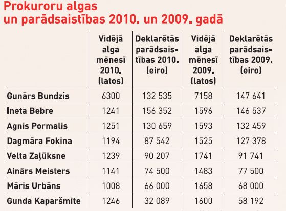 Visvairāk pelnošais prokurors ir Gunārs Bundzis, kurš ir Latvijas pārstāvis Eirojustā (ES Tiesiskās sadarbības institūcija) Hāgā. Algu maksā Latvijas prokuratūra, un pērn viņš saņēmis gandrīz 15 000 latu algu, vēl 60 000 latu viņš ieguvis pabalstā un kompensācijā. «Deklarācijas ieņēmumu sadaļā norādītā pabalstu un kompensāciju summa sastāv no algas pabalsta par dienestu ārvalstī, laulātā un bērna uzturēšanos ārvalstī, kā arī pārējām kompensācijām, kas saistītas ar uzturēšanos ārvalstī,» paskaidrojumā raksta prokurors. Viņš norādījis arī 132 535 eiro lielas kredītsaistības.