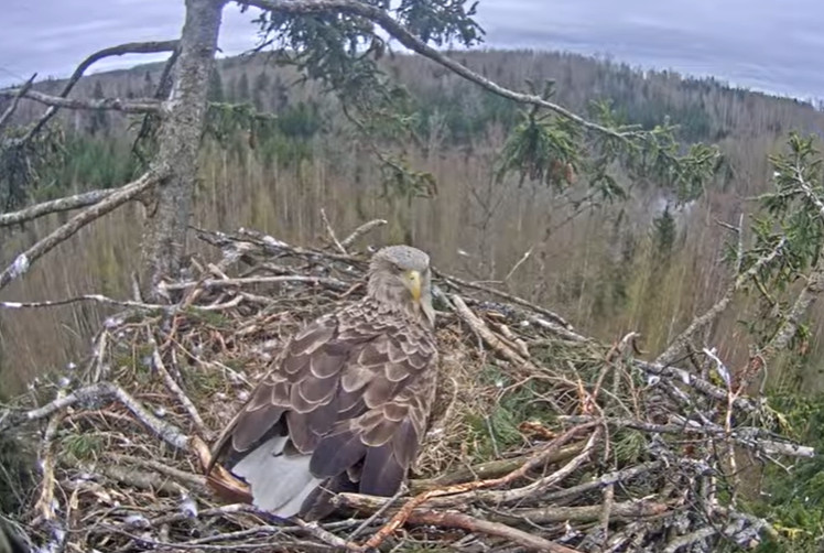 Rūpes par divu olu perēšanu tagad gulstas tikai uz Mildas pleciem. Turklāt pagājušajā sestdienā Mildu satrauca apkārt lidojošais cits jūras ērgļu jaunulis. Lai svešinieku aizgaiņātu no ligzdas, Milda skaļi klaigāja.