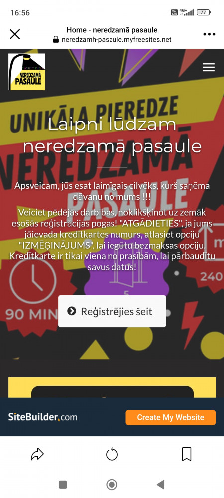 Mēs, Neredzama pasaule vēlamies pievērst sabiedrības uzmanību ļaunprātīgai darbībai, kas tiek veikta mūsu vārdā. Šobrīd ir konstatēts, ka mūsu oficiālā mājaslapa ir klonēta un tiek izmantota krāpnieciskos nolūkos. Informāciju mēs jau nosūtījām FB un visiem medijiem, ziņo mājaslapas administratori.