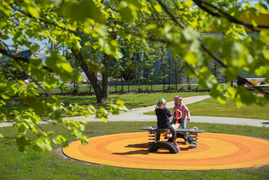 Pagalms būs labiekārtots ar bruģētām autostāvvietām katram dzīvoklim un papildu vietām viesiem, kā arī velo novietnēm un pazemes konteineriem atkritumu šķirošanai. Tāpat tiks izveidota daļēja teritorijas nožogošana, nodrošinot iedzīvotājiem privātumu un drošību.