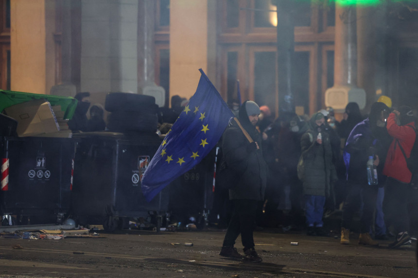 Protesti Tbilisi notiek kopš pagājušās ceturtdienas, kad Gruzijas premjerministrs Iraklijs Kobahidze paziņoja, ka Gruzija līdz 2028.gada beigām atsakās no iestāšanās sarunām ar ES.