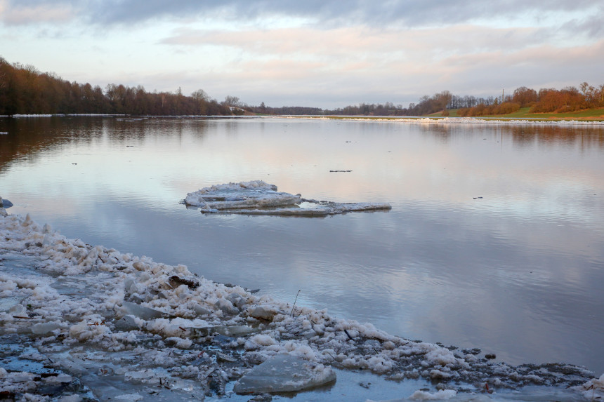 Vairākos upju posmos Latvijas centrālajā un austrumu daļā saglabājas ledus sega, kas galvenokārt kūst uz vietas, liecina Latvijas Vides, ģeoloģijas un meteoroloģijas centra apkopotā informācija.