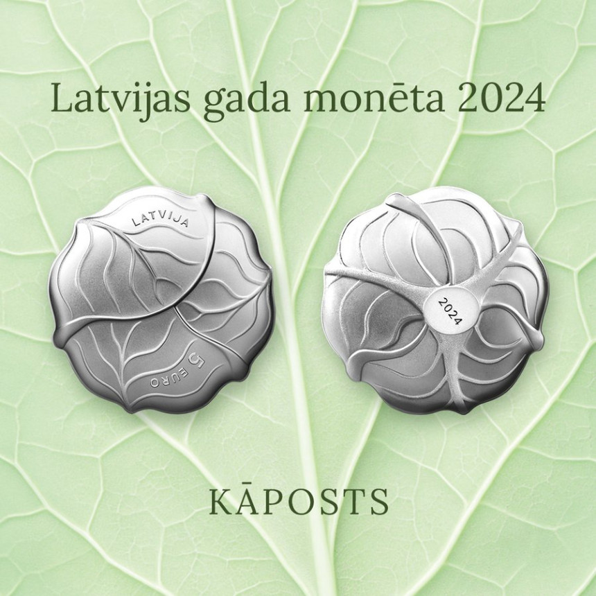 Gadskārtējā sabiedrības aptaujā par "Latvijas gada monētu 2024" atzīta asprātīgā kolekcijas monēta "Kāposts", kas atklāj šā dārzeņa dziļo simboliskumu – tas nesot veselību, pārticību un arī labsajūtu.