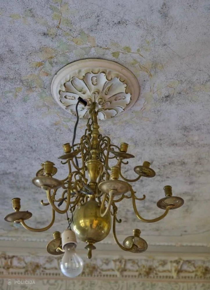 Valsts policijā saņemta informācija, ka Nogales muižas pilī Talsu novadā, Ārlavas pagastā ir nozagta attēlā redzamā lustra. Zādzība pastrādāta laika posmā no 2025. gada 4. janvāra līdz 11. augustam, konstatējot zādzības faktu augustā.